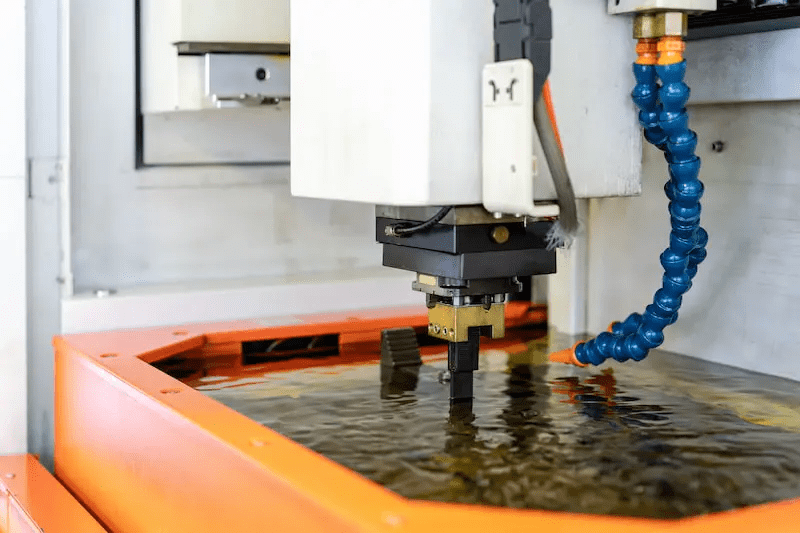 Both methods function in dielectric fluids, but their preferences differ. Sinker usually uses oil-based fluids. On the other hand, Wire EDM commonly use deionized water for its greater flushing qualities.