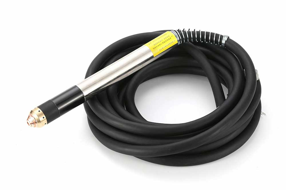 Directing the high temperature plasma jet onto the material is the job of the plasma torch. This component comprises a nozzle, electrode and shield cap. Its well-built construction can go through extreme temperatures (up to 16,650°C).