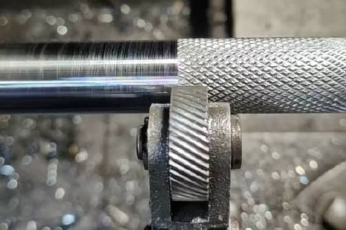 Rolling knurling presses a pattern onto a spinning workpiece using hardened wheels. The wheels push the metal aside to create a ridge, so no material is removed. This method works quickly and produces very little waste. It is generally used for cylindrical parts such as handles or knobs. Using the correct blank diameter is important as it prevents pattern errors or double tracking.